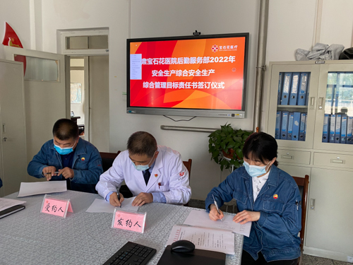 会议主要分为四部分内容,第一项内容是由总务服务管理、基建维修管理以及设备设施维保管理的三位管理人员分别对2022年一季度自己负责的具体工作进行了总结与汇报;第二项内容对后勤相关服务业务的11家外包单位一季度的服务满意度进行了点评,根据回收的217份问卷,以及收集的53条意见建议列出了整改方案;第三项内容,刘忠全主任与后勤三个服务板块管理人员以及服务方代表进行了《甘肃宝石花医院2022年度安全生产综合管理目标责任书》签订仪式,根据国家“管行业必须管安全、管业务必须管安全、管生产经营必须管安全、谁主管谁负责”的原则,进一步落实和明确安全管理目标和责任,建立健全并落实全员安全生产责任制工作的要求,加强电气设备等巡检频次频率,防患于未然,做好风险评估与管控;会上,刘主任传达了通用集团与医院办公会相关精神与方针政策的未来导向,后勤服务必须严格执行“保质量、抓安全、促运行、送服务”的标准,根据《医院后勤服务能耗评价管理》相关要求,希望后勤服务尽量达到约束值标准,向国家标准看齐;并对医院后勤服务管理三甲评审相关细则进行了解读,要求从现在起后勤工作要围绕三甲相关标准执行,一点一滴打好基础。最后,刘主任对二季度的重点工作进行了安排:一是加强各分管业务制度的草拟修订与审核;二是夏季做好院区雨排系统整体清理工作,做好汛期应急事件准备工作;三是基建做好远程中心、康复中心改造、东区双电源改造等三个重点工作。