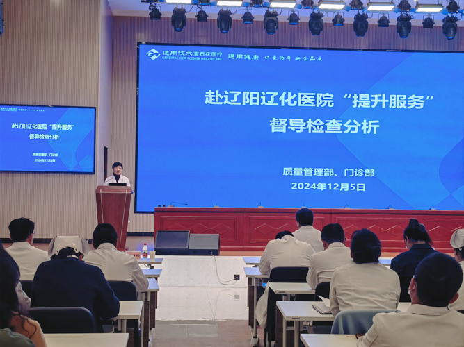 质量管理部高其欢主任反馈了近期赴宝石花医疗辽阳辽化医院“提升服务”督导检查的分析报告,并将此次督导调研过程发现的亮点从环境设施、流程优化、特色服务,医院管理等各个方面逐一进行汇报,除了亮点的学习,也梳理反馈了医院管理细节方面不够完善的地方,希望通过此次讲解传达,各个部门能够对照自查,逐步改善医院医疗服务方面的不足。