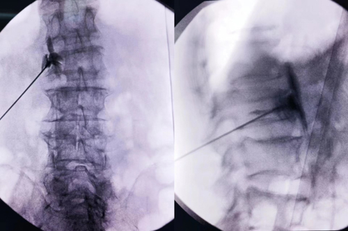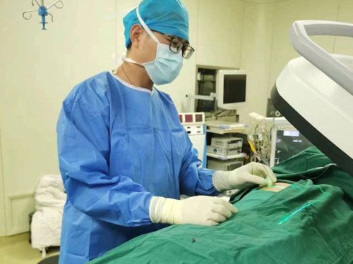 本次来骨科住院时患者左足再次出现足趾坏疽伴感染面临截趾,患者担心术后创面不愈合,瞿创业副主任医师带领其团队仔细研究患者病情,诊断明确,患者病程长,且长期处于下肢疼痛状态,左下肢缺血情况严重,综合考虑后,建议先行C型臂引导下经皮穿刺腰交感神经节阻滞+射频脉冲调控术,改善下肢血液供应,再行截趾手术。