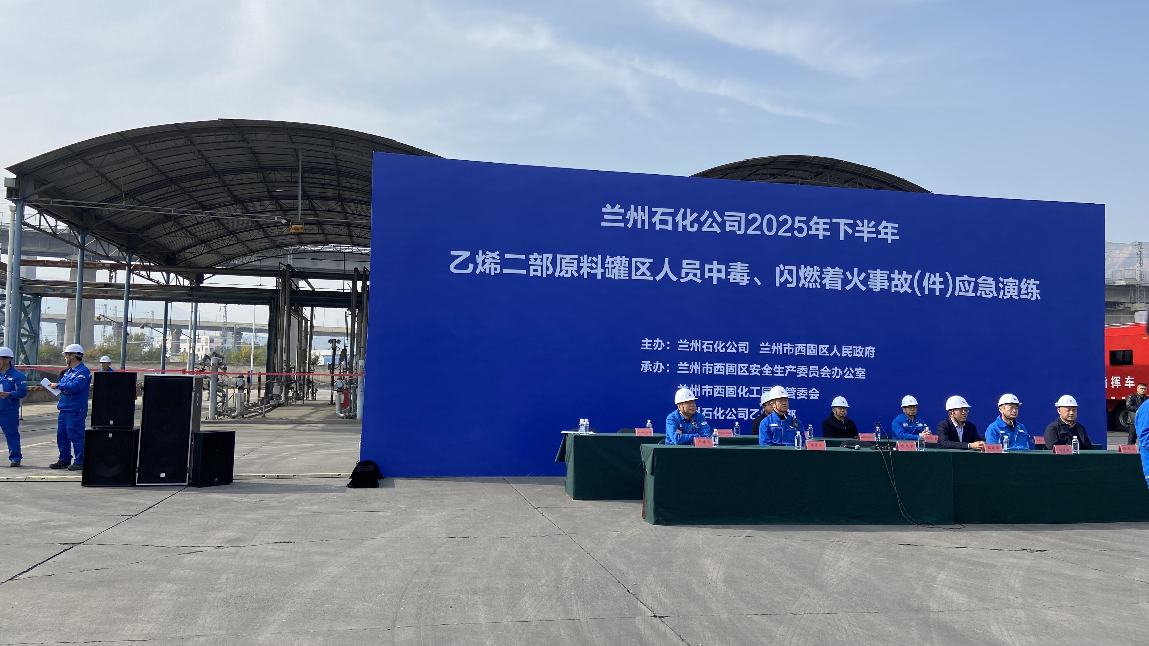 2025年10月29日14时30分,兰州石化公司执行董事、党委书记徐文学下达指令,由兰州石化公司、兰州市西固区人民政府主办,兰州市西固区安全生产委员会办公室、兰州市西固区化工园区管委会、兰州石化公司乙烯二部承办的“兰州石化公司2025年下半年乙烯二部原料罐区人员中毒、闪燃烧火事故(件)应急演练”,在乙烯二部原料罐区正式启动。