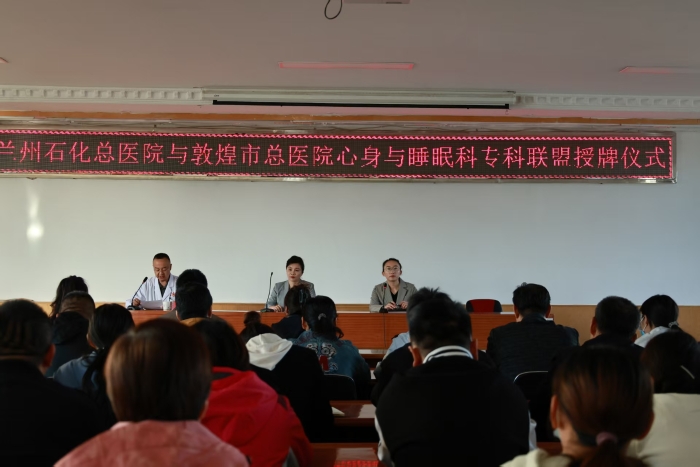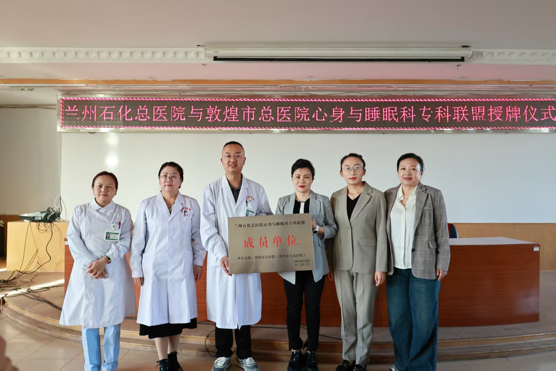 2025年9月29日,兰州石化总医院(甘肃中医药大学第四附属医院)与敦煌市总医院心身与睡眠科专科联盟授牌仪式,在敦煌市总医院顺利举行。此次联盟旨在整合优质医疗资源,破解基层精神卫生领域“硬件强、软件弱”的发展难题,提升敦煌市心身与睡眠疾病诊疗水平及精神卫生防治能力,切实服务敦煌市及周边民众健康需求。