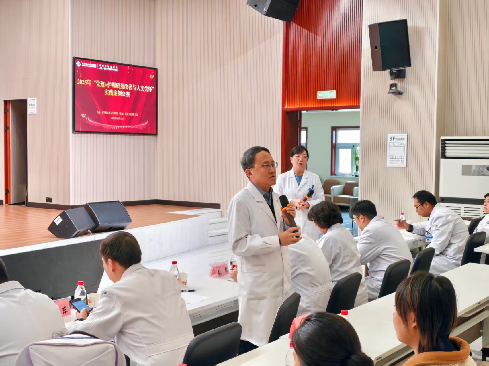 汇报结束后,评委们对本次大赛进行了点评与专业指导。评委们对比赛给予充分肯定,同时就选手表达能力、PPT制作、质量改进目标设定等方面提出改进建议。张毅副院长指出,本次案例精准对标临床难点与人文需求,并建议后续汇报应进一步优化形式以增强表现力。任东副书记强调,比赛是"党建+"与人文关怀的深度融合,倡导医护团队转变视角,做有温度的医疗。