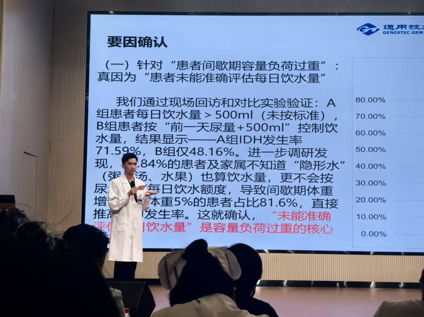 在比赛现场,汇报人梁顺帅护士以沉稳的台风、清晰的逻辑和富有感染力的语言,将这一复杂的质量改善项目娓娓道来。他通过详实的数据对比、生动的案例图片,直观展示了项目开展后,科室患者透析中低血压发生率显著降至20.27% 的卓越成果。这些真实的数据,淋漓尽致地体现了护理工作“以人为本”的核心价值。梁顺帅护士的汇报不仅是一场专业技术的展示,更是一次对护理职业精神与专业提升的深刻诠释,完美契合了比赛的主题,征服了全场评委。