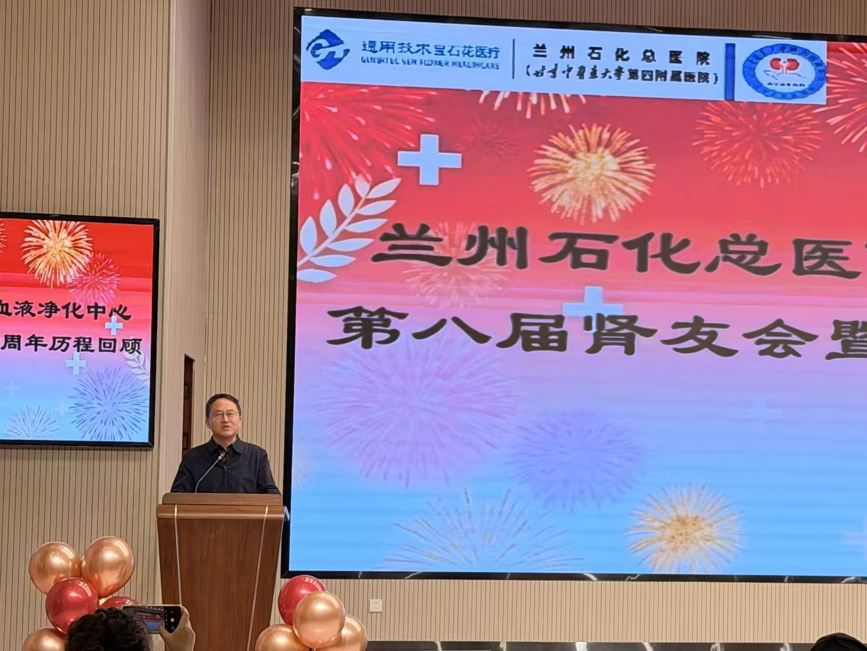 领导致辞 温情寄语:兰州石化总医院(甘肃中医药大学第四附属医院)党委书记刘永斌、副院长姚晓斌参加活动并致辞。刘永斌书记向三十年来为血液净化中心发展辛勤付出的医护人员表示感谢,并向长期以来信任、支持血液净化中心的肾友和家属们表达了最诚挚的谢意。