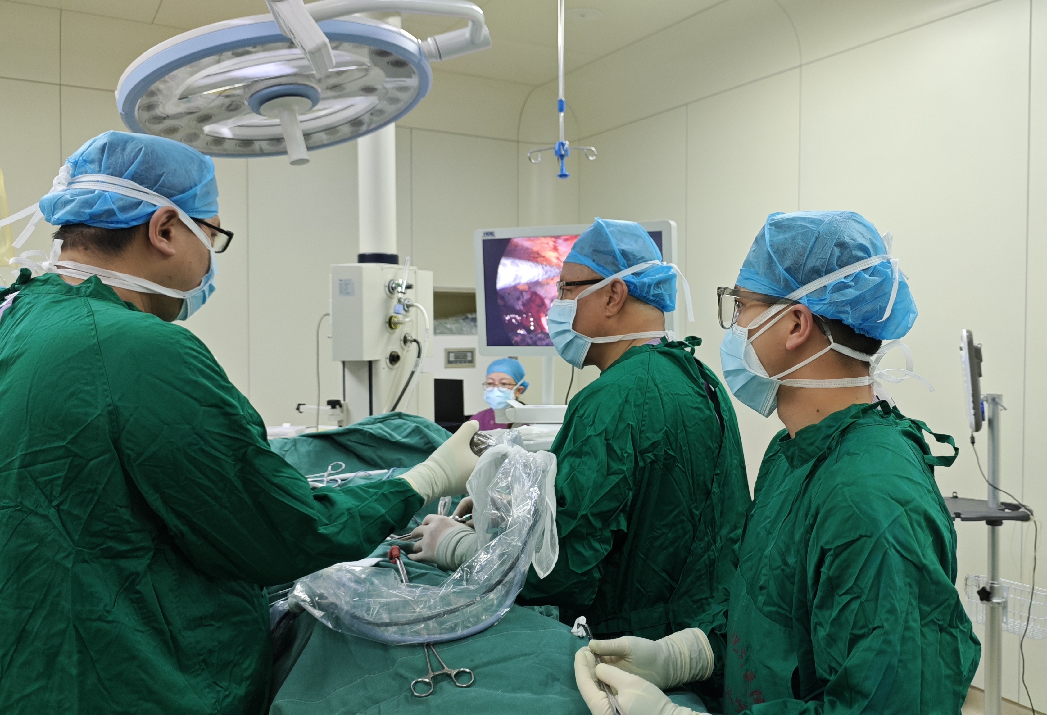 与此同时,急诊送来一例开放性手外伤,一名50岁男性患者在家干活时不慎被铡草机切割后导致右手开放性外伤,骨科的甘医生、高医生、王医生在显微镜下,如同绣花般吻合细小的血管和神经,此刻,比拼的是极致的耐心与精细。另一名患者因高空坠落致创伤性气胸、肋骨骨折,需要胸腔镜探查。麻醉医生紧盯着监护仪上起伏的波形,控制着“单肺通气”;主刀医生熟练地操作着长长的腔镜器械,一场体内的“纵深突袭”正在悄无声息地进行。