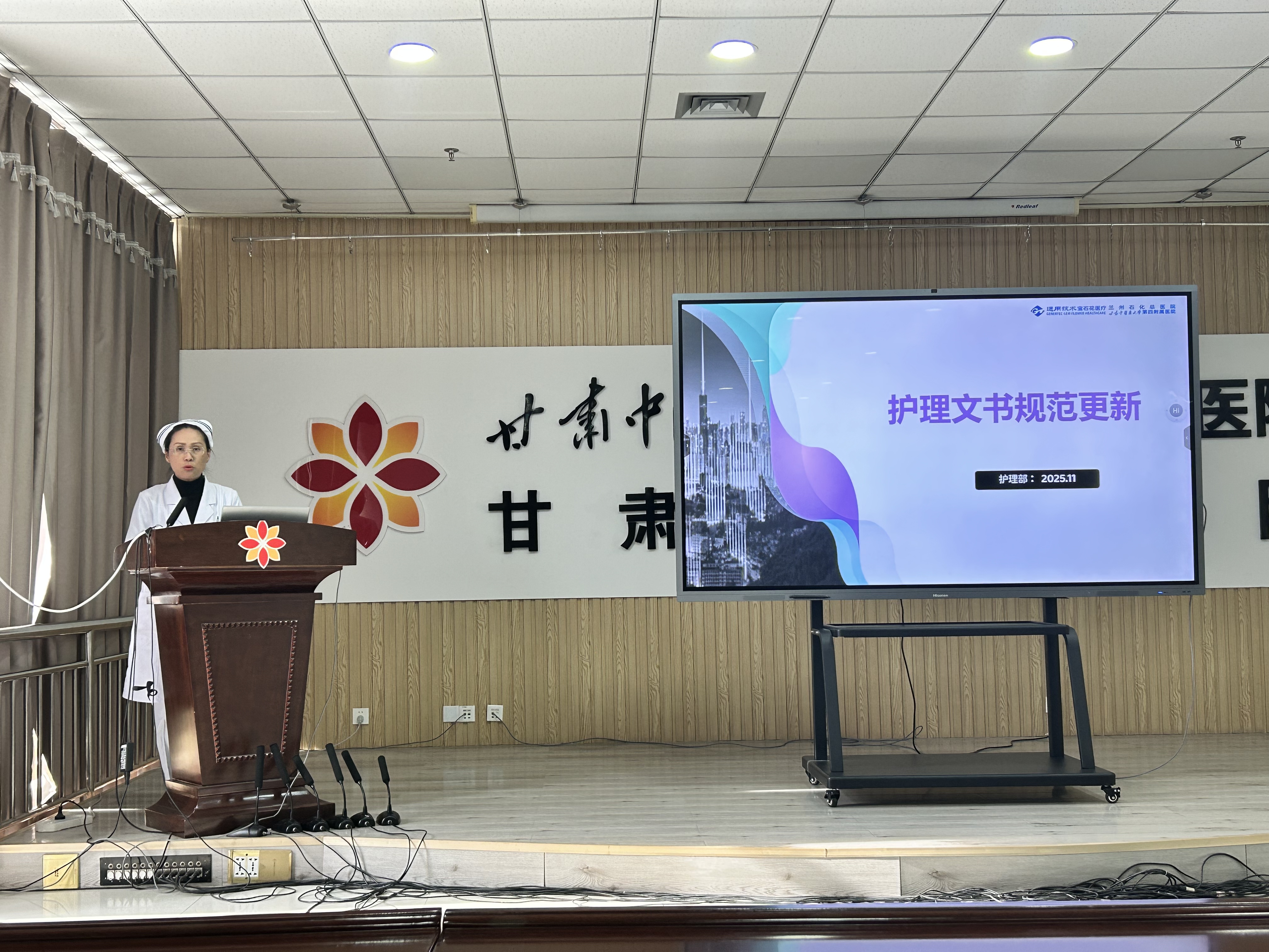 为进一步规范护理文书书写,提升护理质量与安全管理水平,落实甘肃省护理学会最新发布的《甘肃省护理文书书写规范》。兰州石化总医院(甘肃中医药大学第四附属医院)护理部于11月21日组织护理人员开展专题培训。会议由护理部主任刘世云主持,陈海燕护士长现场解读新版规范,该规范自12月1日起正式执行。