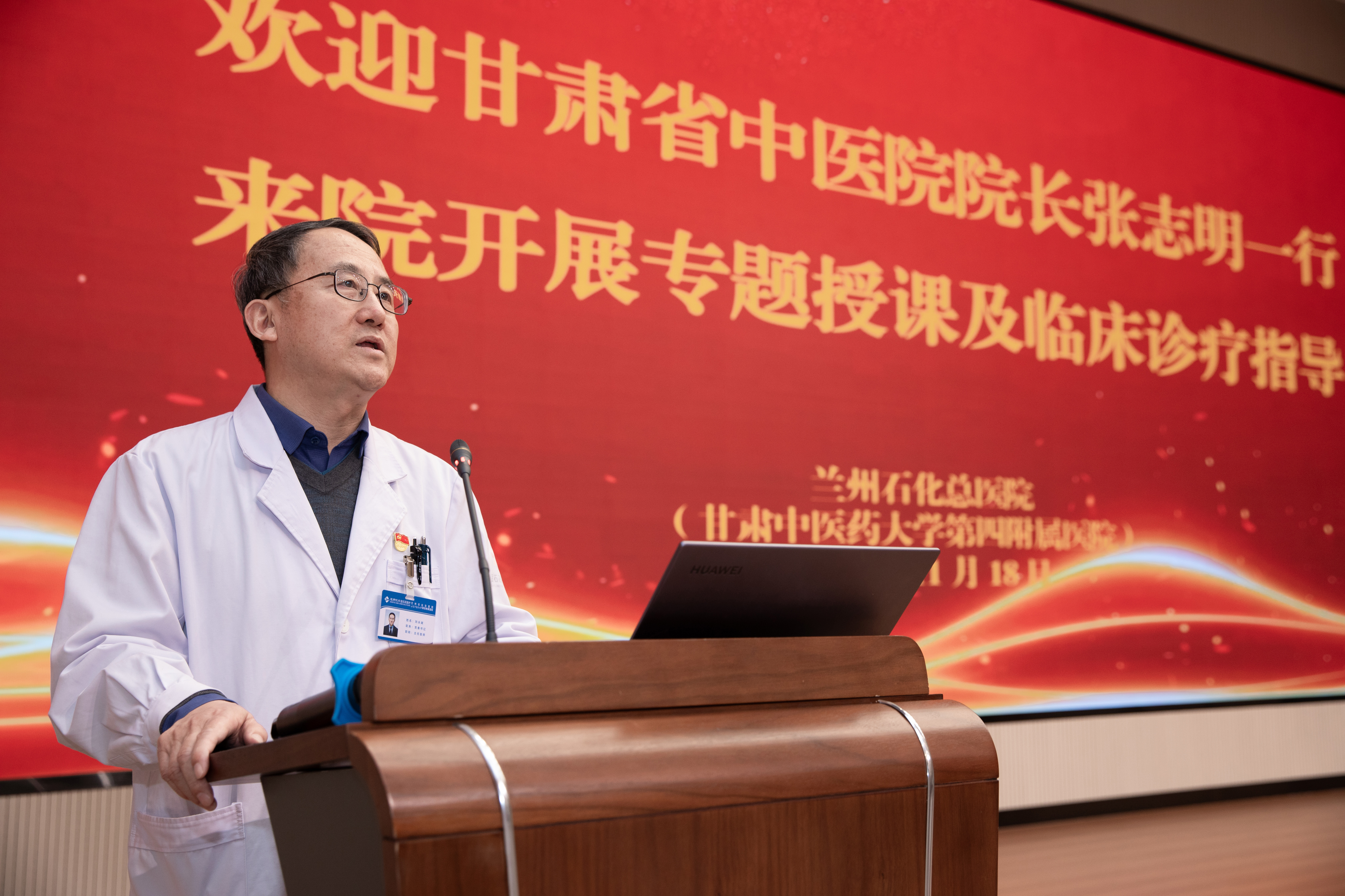 2025年11月18日下午,全国名中医、长江学者特聘教授、甘肃省中医院院长张志明教授携甘肃省中医院副院长罗向霞教授走进兰州石化总医院(甘肃中医药大学第四附属医院)开展学术交流、临床诊疗指导活动,学术交流会由兰州石化总医院党委书记刘永斌主持。