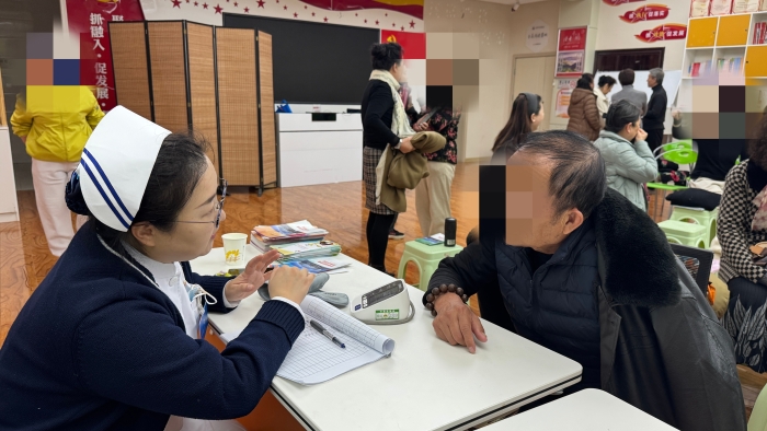 合唱队的老人们常年热衷于歌唱活动,但睡眠障碍以及腰腿、颈肩疼痛等问题,却时常影响着他们的生活与排练状态。心身睡眠科的商可意医生结合老人们的生活场景,用通俗易懂的语言开展睡眠障碍科普讲座,详细讲解了老年睡眠障碍的常见原因、潜在危害以及科学改善方法,从睡前习惯调整到情绪调节技巧,全方位为老人们的“好睡眠”支招,让大家了解到优质睡眠对保持良好歌唱状态的重要性。随后,骨伤科赵军虎医生聚焦老人们高频出现的腰腿疼、颈肩痛问题,结合歌唱时的身体姿态特点,深入分析了疼痛的诱发因素,如长期保持特定姿势、关节自然退变等。他还现场演示了简单易行的预防和缓解动作,指导老人们在日常排练和生活中如何科学保护骨骼关节,避免因身体不适影响合唱热情。活动现场,杨静老师与两位医生还为老人们测量血压,仔细记录每一位居民的数据,耐心询问他们的身体状况。对于血压异常的老人,及时给出了个性化的健康调理建议和就医指导。老人们边咨询健康问题,边交流合唱心得,现场氛围热闹又温馨,杨静老师还特别为大家介绍了我院开展的上门服务,考虑到不少患者家中有老人需要照料,同时大家平时也会参与各类业余活动,时间安排相对紧张,这项上门服务恰好能解决大家往返奔波的顾虑,让患者足不出户就能享受到专业服务,既省心又能保障需求,切实为大家提供了便利。