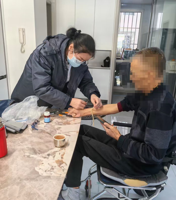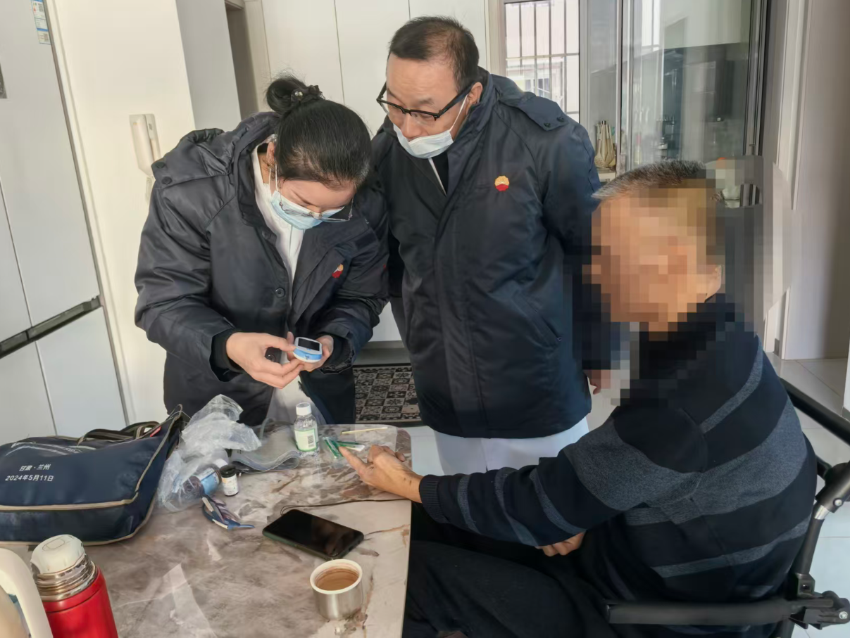 为深入践行“以患者为中心”的服务理念,切实解决群众急难愁问题。2025年11月27日中午,兰州石化总医院(甘肃中医药大学第四附属医院)肿瘤血液科党员突击队在党支部书记朱增强的带领下,主动走出医院,深入社区,为一名行动不便的肿瘤患者提供上门医疗服务。