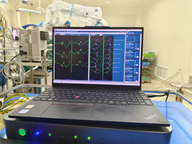 术中电生理监测:通过持续采集体感诱发电位(SSEP)和运动诱发电位(MEP),实时追踪脊髓神经传导功能,术中两次预警信号波动均被精准捕捉,团队随即调整操作路径,最终实现功能区域“零误伤”;
