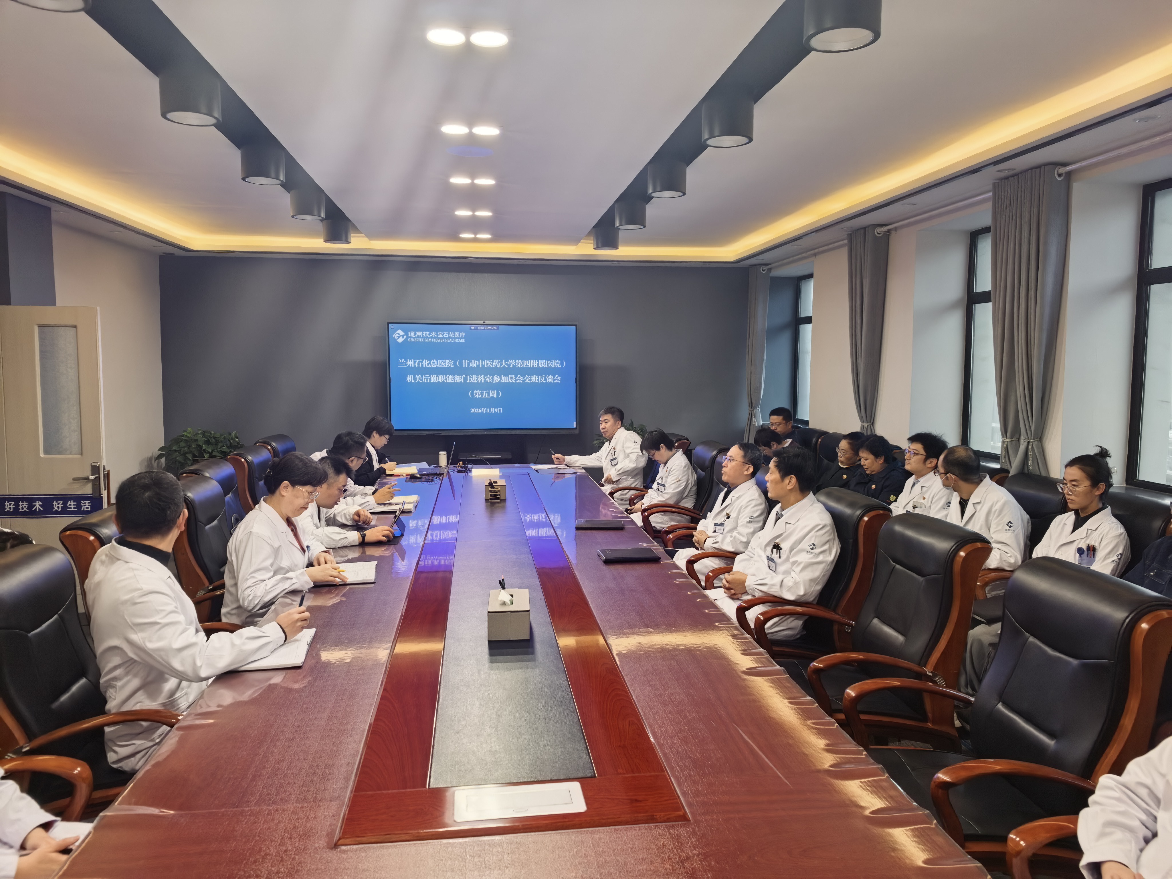 2026年1月9日上午,兰州石化总医院(甘肃中医药大学第四附属医院)机关后勤职能部门深入临床一线晨交班(第五周)反馈会在内科楼7楼1号会议室顺利召开。会议由质量管理部牵头组织,党委副书记、院长蒲华云,副院长姚晓斌及相关职能部门负责人参会,核心议题为总结上一周“机关后勤深入临床”活动阶段性成果,同步梳理本周新收集的临床意见建议。