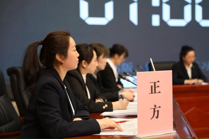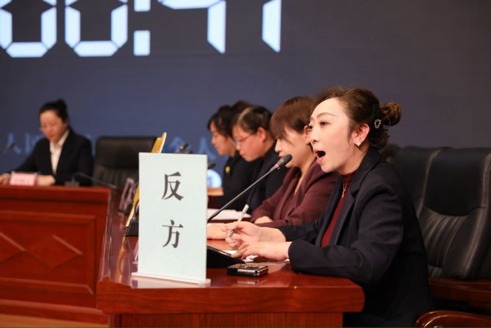 利用简短的午餐时间,四名队员围坐在办公室边吃饭,边争分夺秒地梳理逻辑、寻找案例、构建框架。没有PPT,没有预演,只有真实的想法在彼此之间流动。那一刻,她忽然明白:这不仅仅是一场比赛,更是一次对自我认知的挑战与重塑。大家都没有参加过真正意义上的辩论赛,更没有所谓辩手该拥有的口才与思维,但学习的初阶就是模仿,大家决定用一句话引出自己的辩位及名字,听起来很简单的事情,也够我们思想碰撞了许久,练习起来,嘴瓢的绕不清楚而笑场。