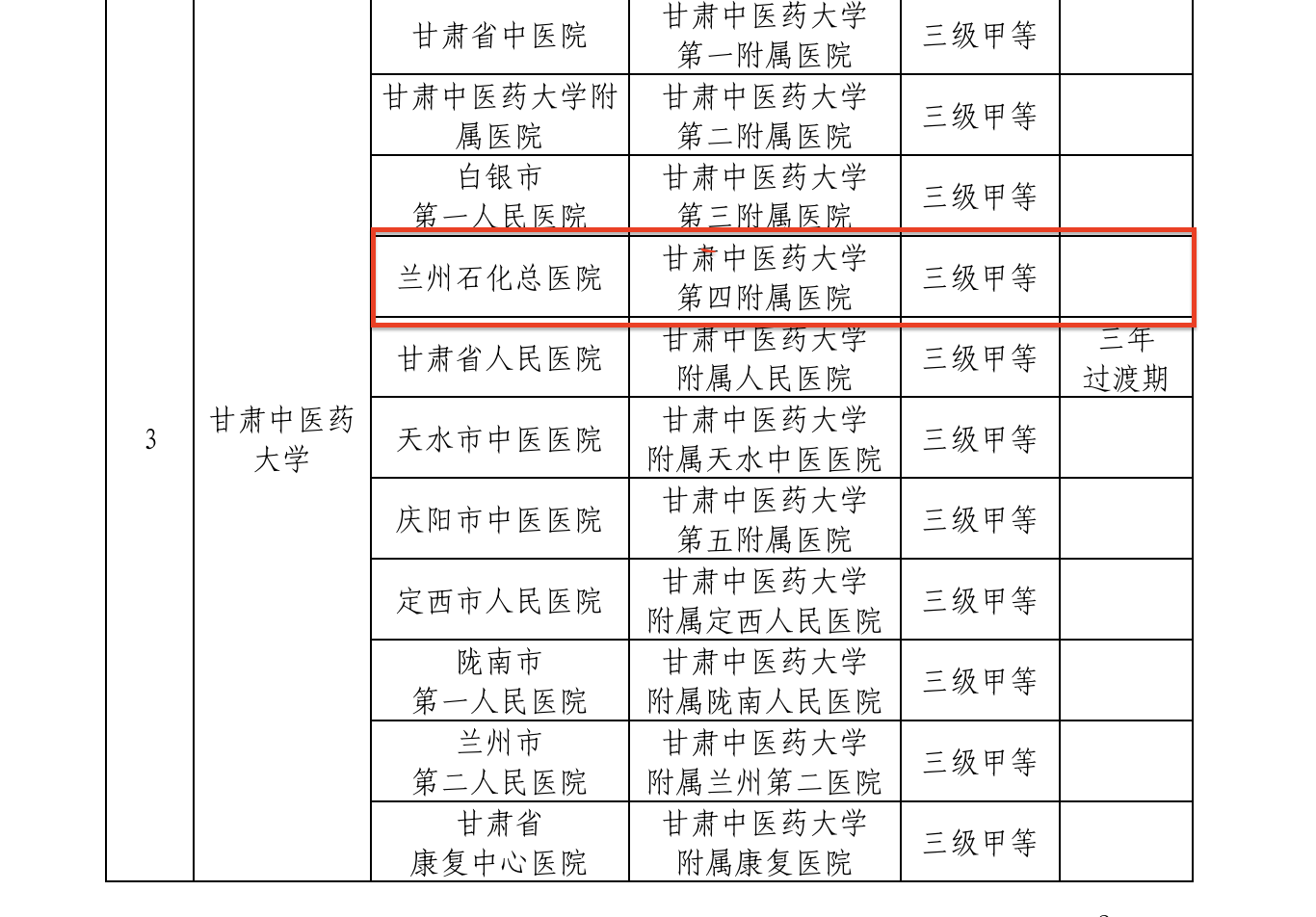 2026年1月21 日,兰州石化总医院(甘肃中医药大学第四附属医院)传来振奋人心的喜讯——经甘肃省卫生健康委员会、甘肃省教育厅联合组织的严格评审,兰州石化总医院已成功通过甘肃省高等医学教育临床教学基地复审,被继续认定为甘肃中医药大学第四附属医院,有效期五年(自2026年1月8日起)