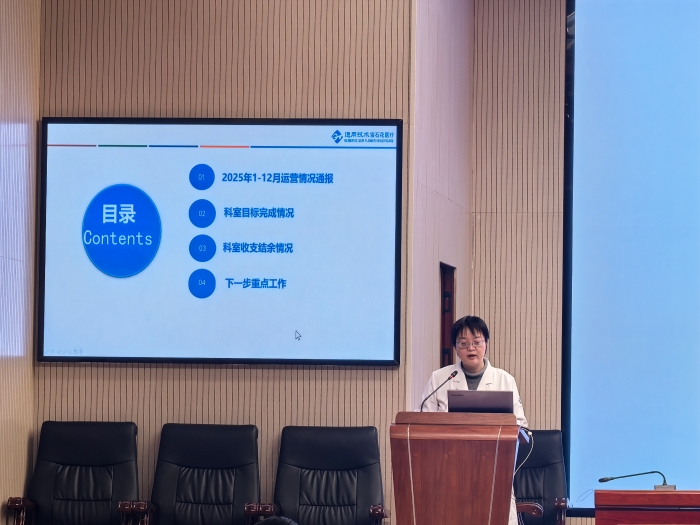会议伊始,财务总监孙铃立足医院全年运营数据,从财务收支、成本管控、预算执行等核心维度,作了两个院区、四个社区服务站等的整体运营分析报告。报告以翔实的数据全面梳理了医院全年运营工作的亮点与成效,客观剖析了问题与不足,为运营管理工作的优化提供了精准的财务数据支撑和方向指引。