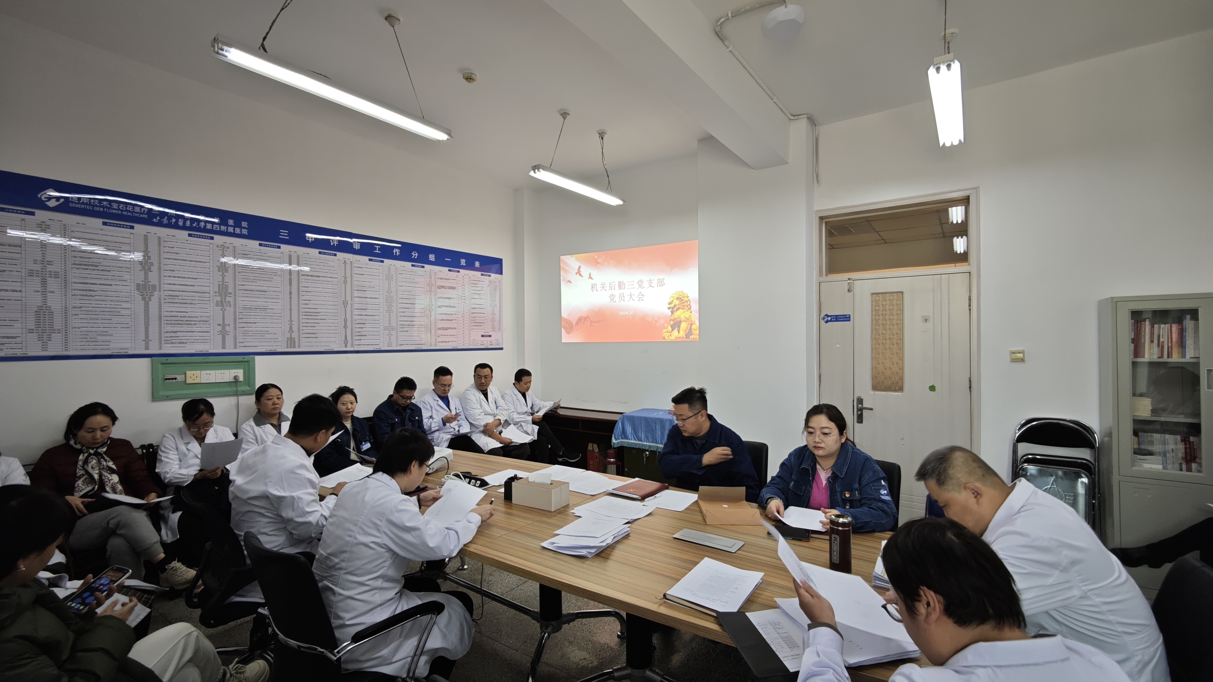 近日,机关后勤三党支部在兰州石化总医院(甘肃中医药大学第四附属医)办公楼七楼2号会议室,组织召开2025年度组织生活会、民主评议党员及2026年第一季度党员大会与党课,支部全体党员参加会议。