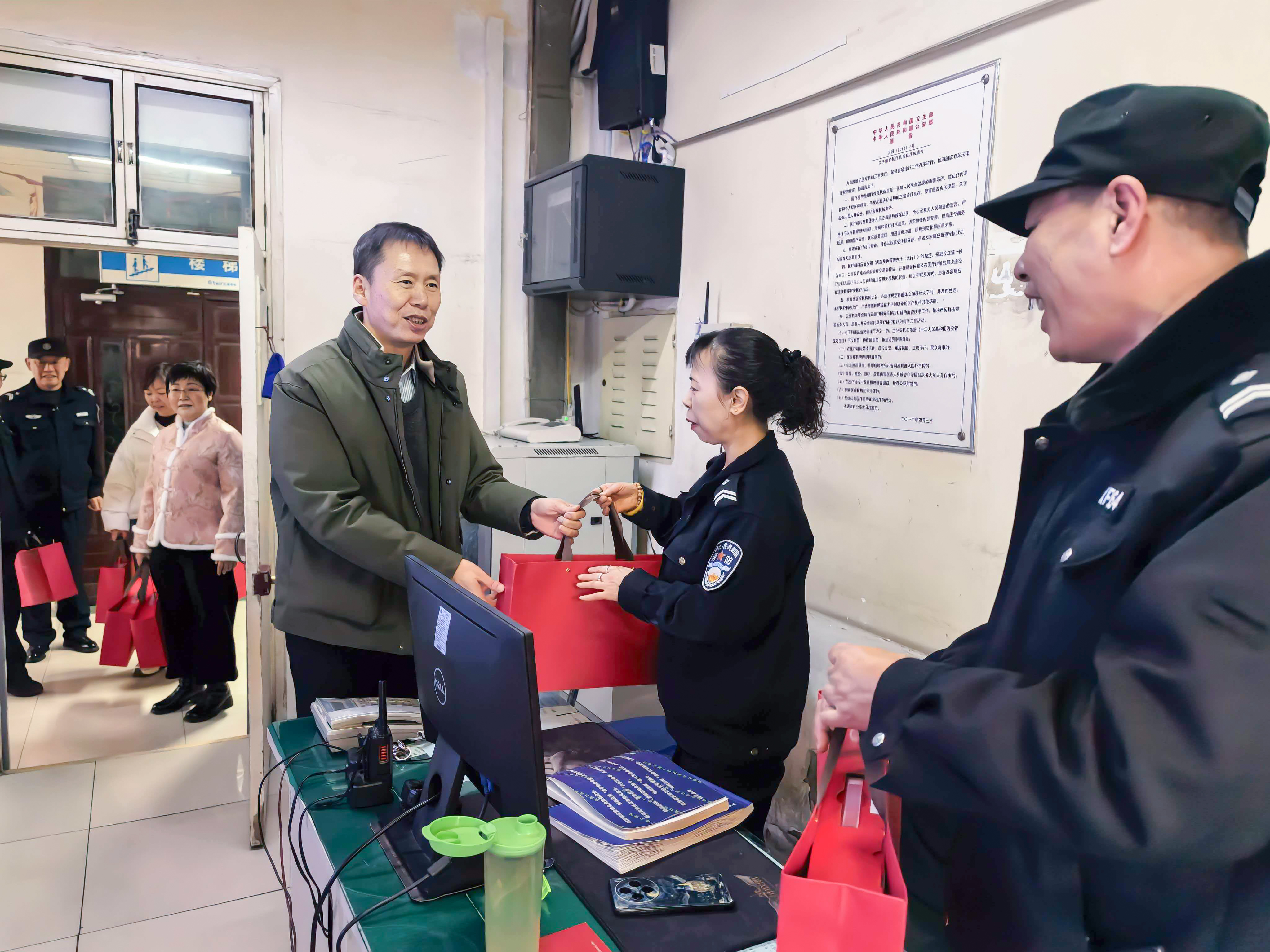 一大早,院领导班子分头带队,深入临床一线、医技科室和后勤保障部门,看望慰问坚守岗位的同事,送去节日问候和新春祝福。同时详细了解节日期间科室运转、患者收治及应急准备情况。