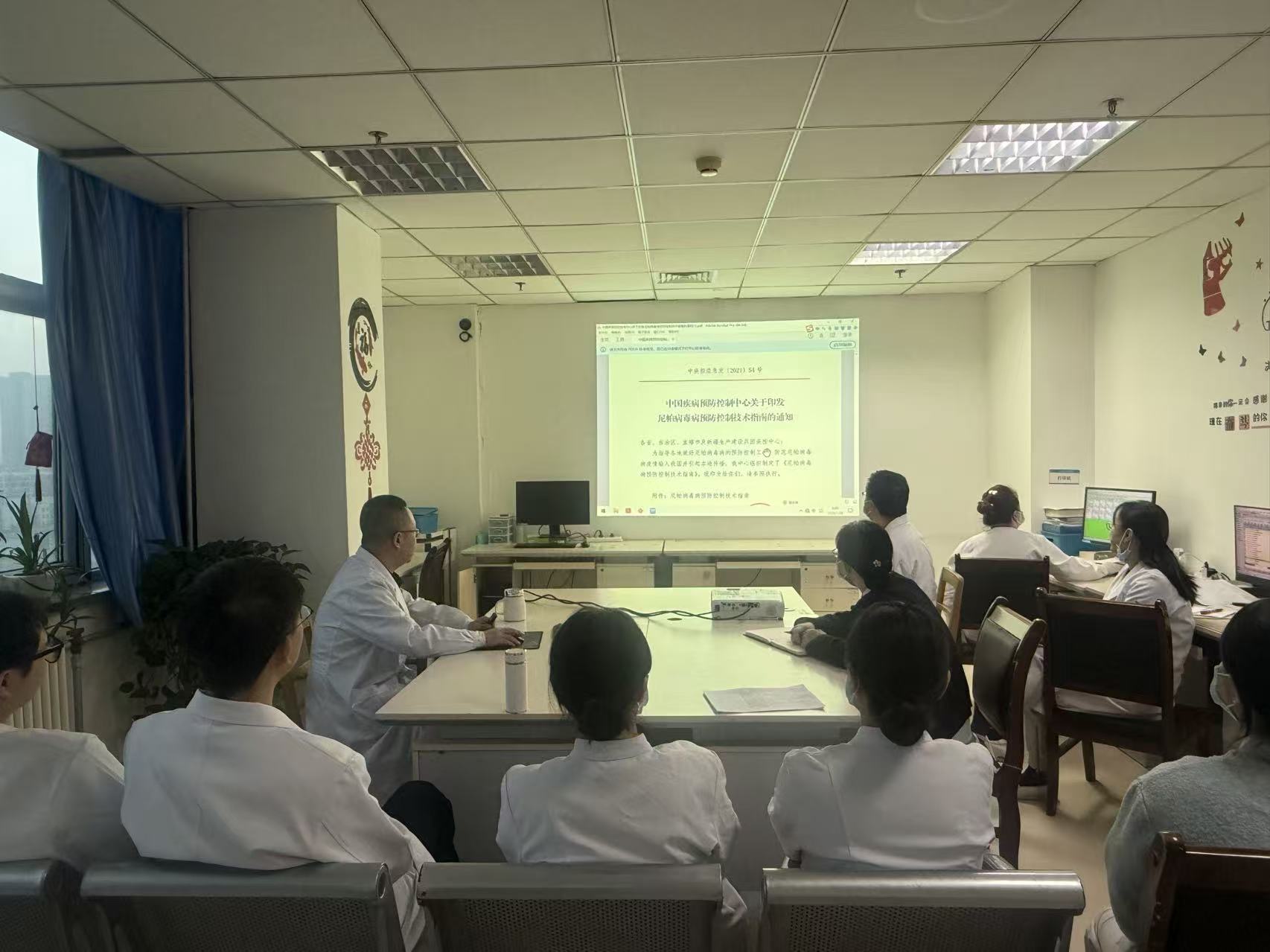 兰州石化总医院(甘肃中医药大学第四附属医院)泌尿疼痛科组织专题晨会,学习《尼帕病毒病预防控制技术指南》。