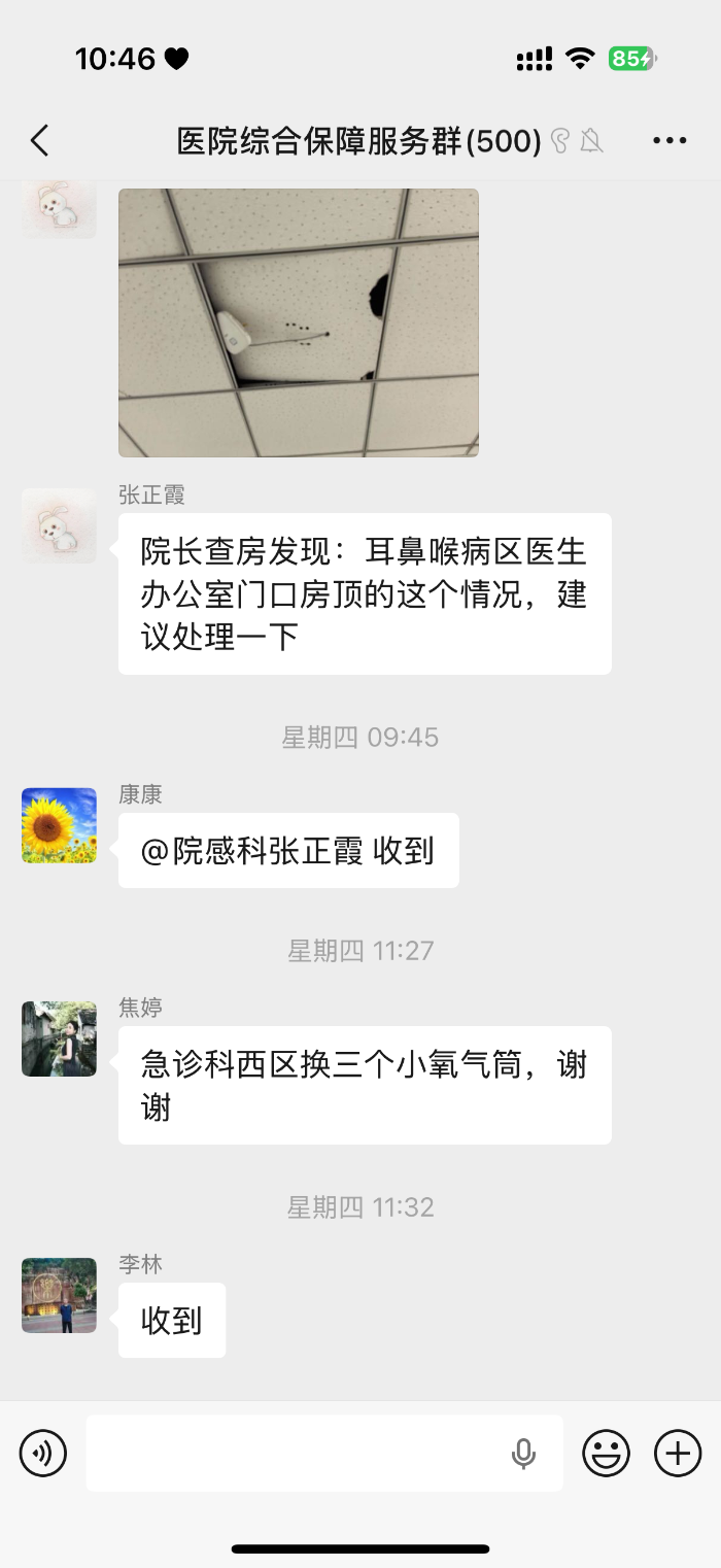 春节在岗,使命在肩为确保 2026 年春节期间医院各项工作平稳运行,后勤团队提前部署、周密安排,开启 “春节保障模式”。从设备巡检到应急值守,从物资供应到环境整治,全方位、无死角的后勤保障,换锁、通下水、安插座、送氧气瓶、换灯管等随叫随到,为医患度过一个平安、祥和的春节保驾护航。