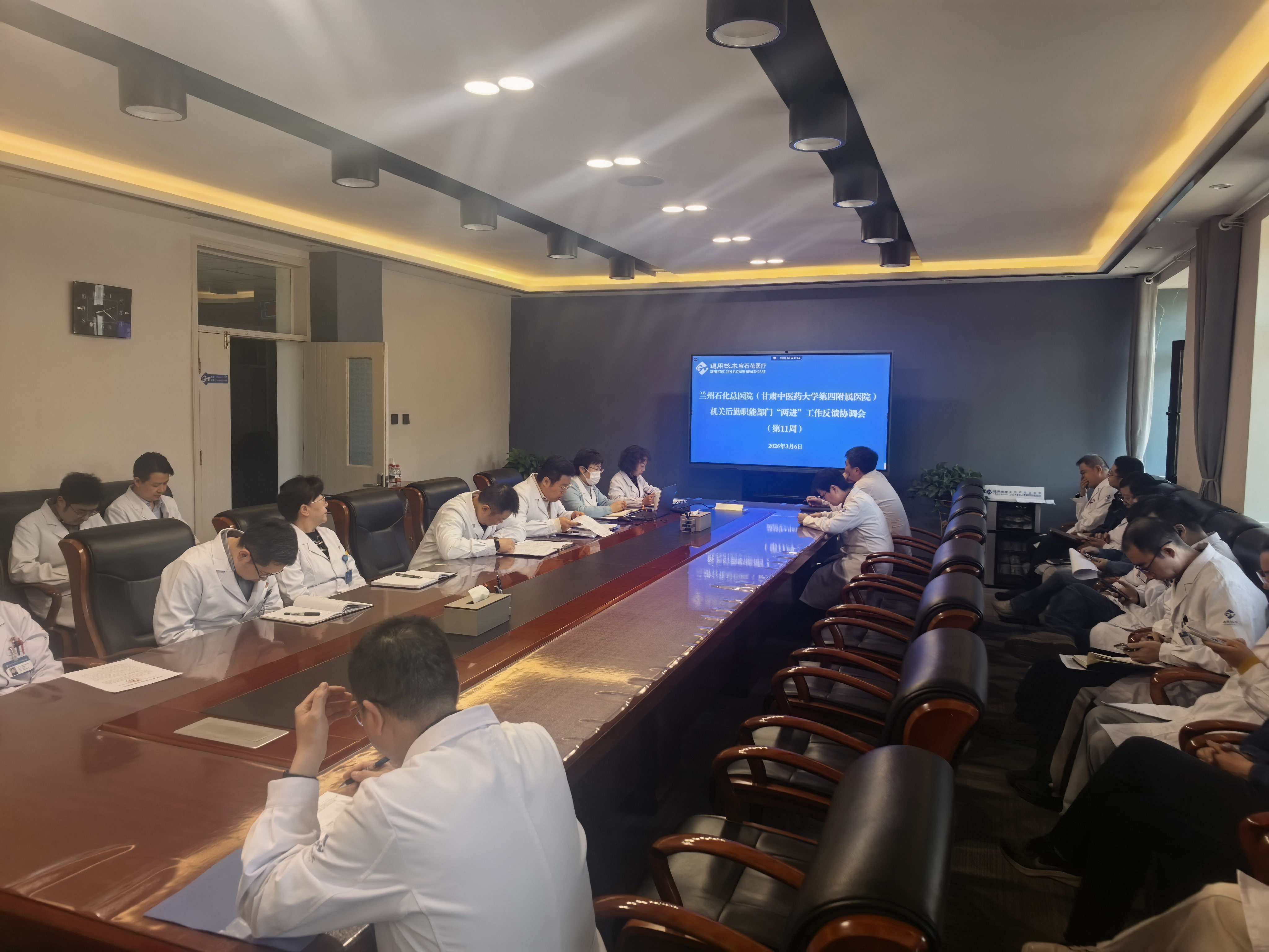 为持续深化机关后勤服务临床实效,推动问题闭环整改,2026年3月6日上午,兰州石化总医院(甘肃中医药大学第四附属医院)机关后勤职能部门深入临床一线晨交班(第十一周)反馈会在医院内科楼7楼1号会议室顺利召开。会议由质量管理部牵头组织,财务总监孙铃,副院长姚晓斌、纪委书记杨斌及相关职能部门负责人参会。