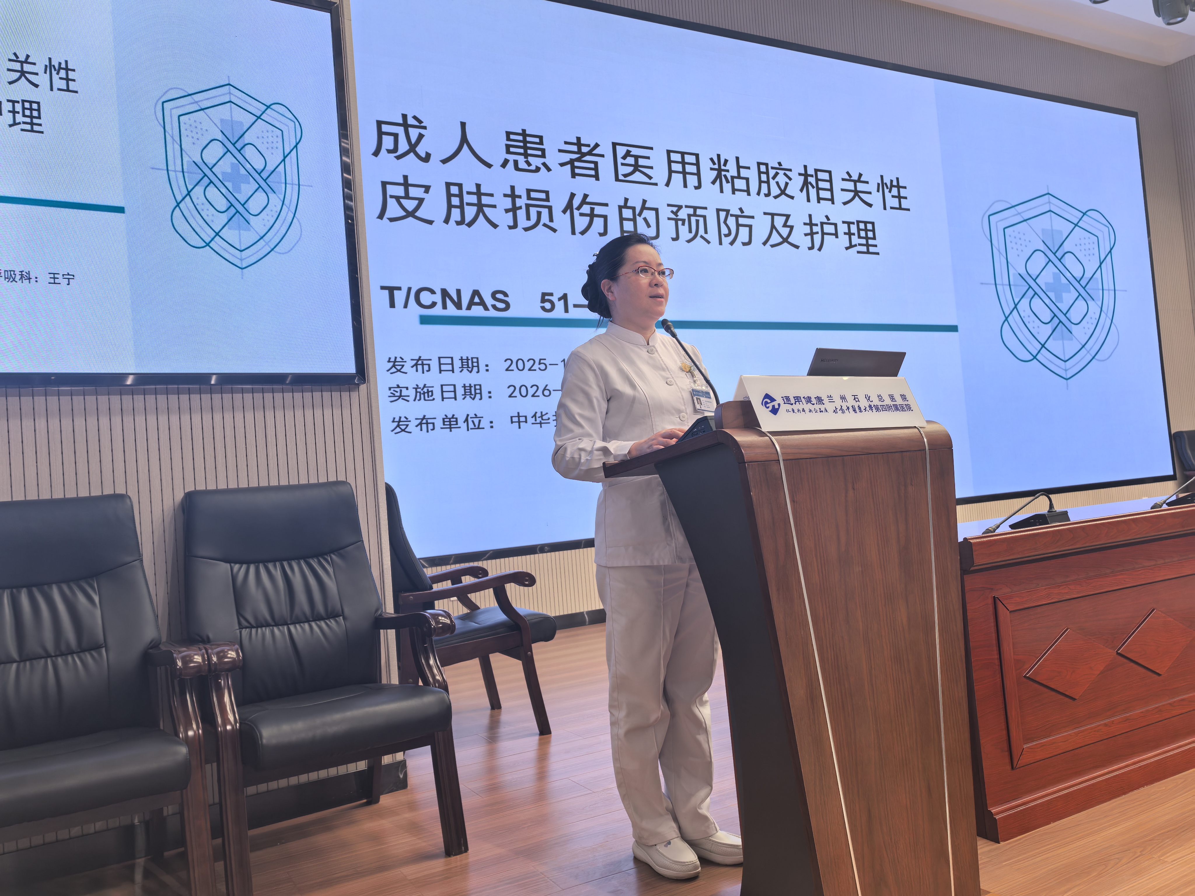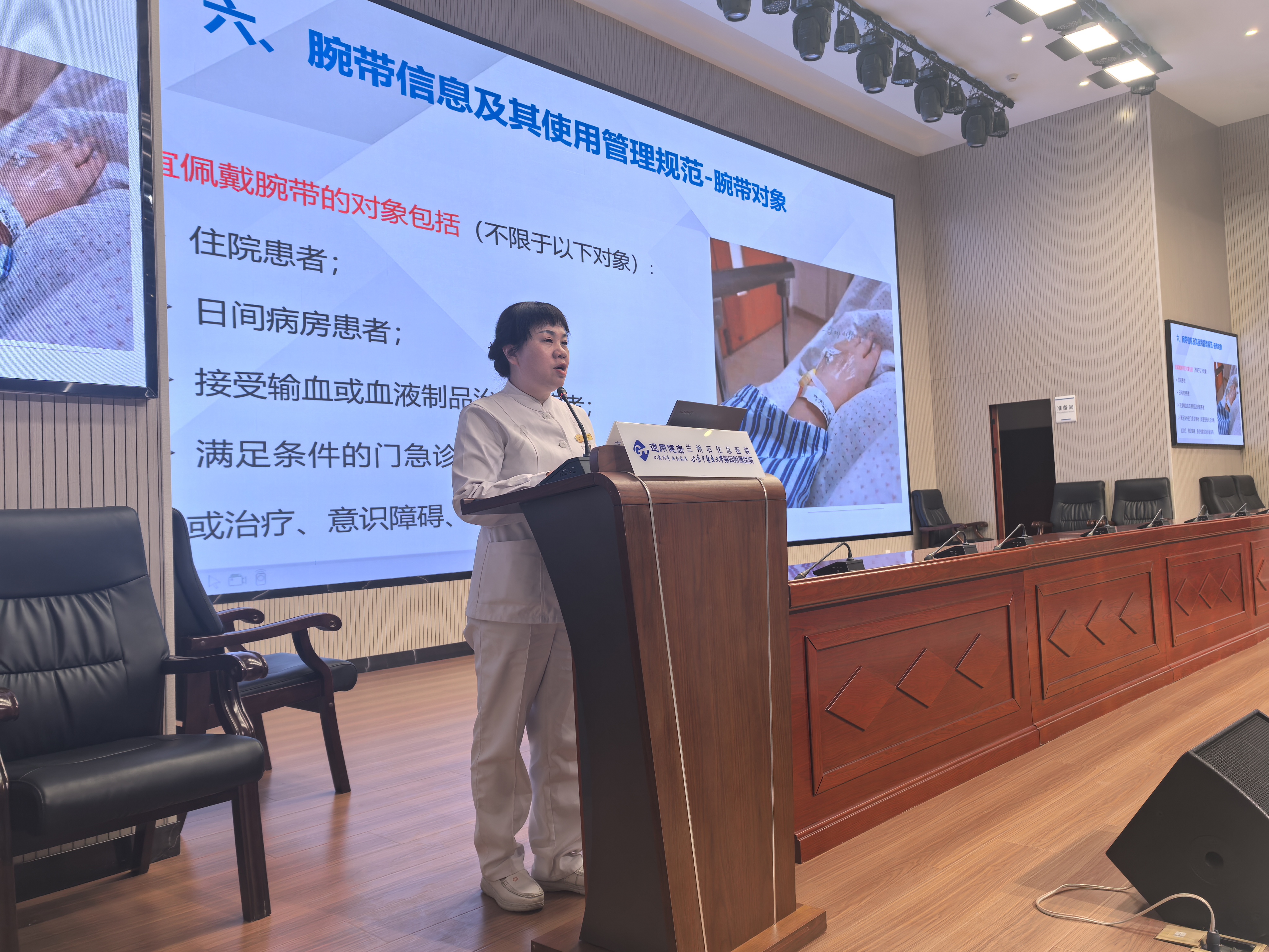 本次培训由大内科护士长王宁主持并率先授课。她围绕《成人患者医用粘胶相关性皮肤损伤的预防及护理》进行解读,结合临床案例深入浅出,引发在场人员共鸣。随后,特殊单元护士长杜维翠解读《患者身份识别管理标准》,逻辑严谨、层层递进,将安全核心理念讲透讲实;消供中心护士长王雪婷讲授《针刺伤预防及处理》,语言生动、实用性强;职业病神经内科护士长张静分享《成人吞咽障碍患者口服给药护理》,内容细致、贴近临床。四位讲者授课紧贴工作实际,重点解析标准要点,现场学习氛围浓厚。