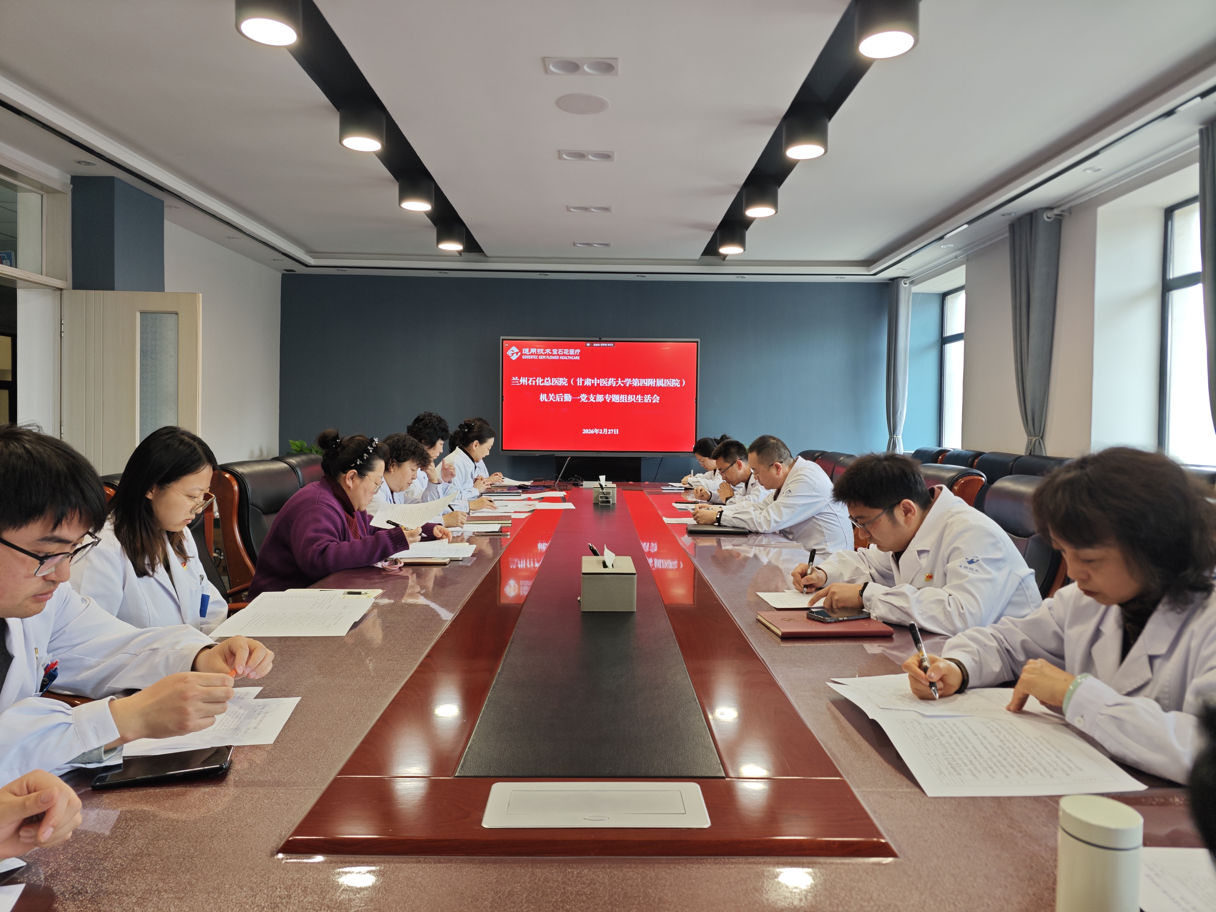 2026年2月27日上午,医院机关后勤一党支部在机关7楼1号会议室召开,会议由党支部书记李惠云主持,党支部全体党员、积极分子和群众代表参加了此次会议。