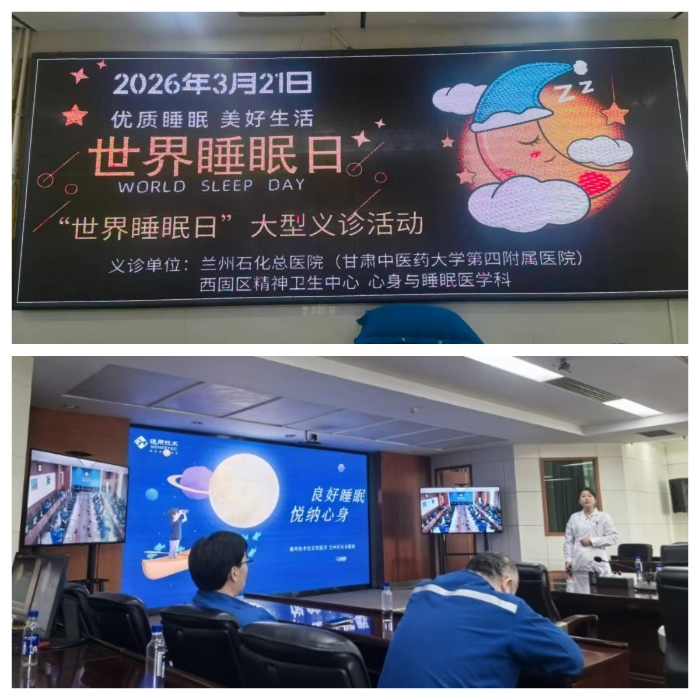 为践行“以人民健康为中心”理念,落实健康甘肃建设要求,紧扣第26个世界睡眠日“优质睡眠,美好生活”主题,积极响应中国睡眠研究会“晚安嘉年华·甘肃睡眠健康促进计划”,兰州石化总医院(甘肃中医药大学第四附属医院)坚持党建引领,依托心身与睡眠医学专科优势,于3月18日至21日开展系列睡眠心身健康公益活动,以精准诊疗、科普宣讲、基层义诊三位一体的形式,全方位守护群众睡眠健康,活动累计覆盖人群1500余人,把优质健康服务直通基层一线。