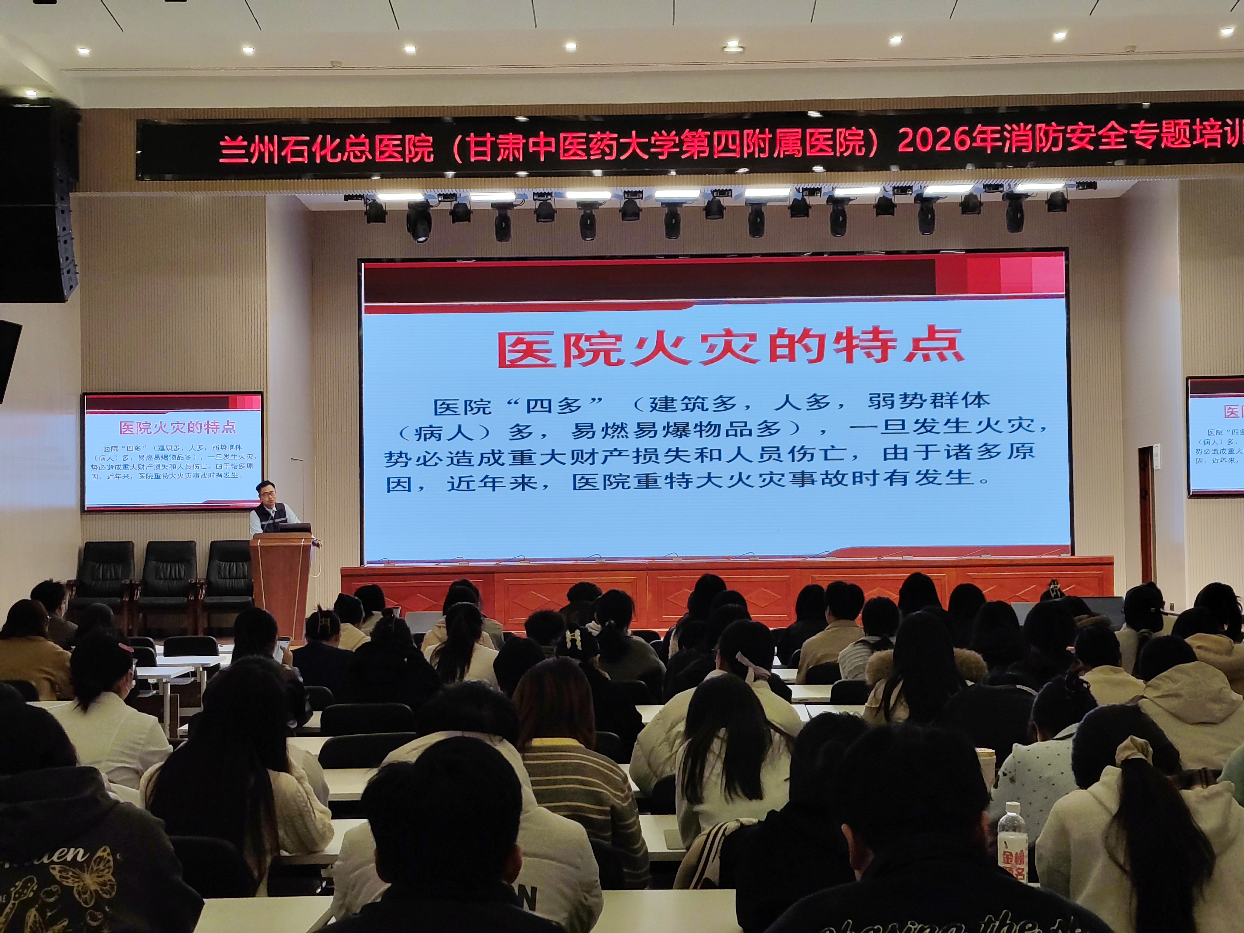 为进一步增强全院学生消防安全意识,提升防范火灾与应急避险能力,2026年3月20日,兰州石化总医院(甘肃中医药大学第四附属医院)在临床科研教学中心3楼会议室组织开展了全体见习生和实习生的消防安全专项培训。