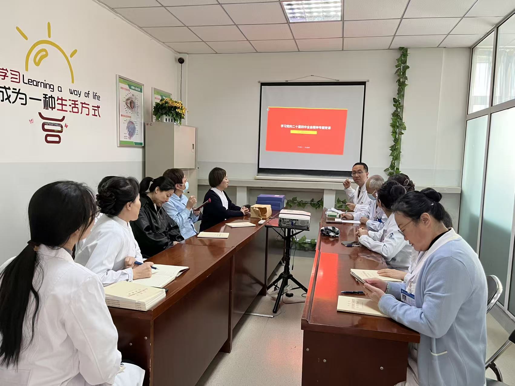 为深入学习领会党的二十届四中全会精神,近日,兰州石化总医院(甘肃中医药大学第四附属医院)东区二党支部组织全体党员开展专题学习会,学习会上支部书记带领全体党员重点解读了全会召开的重大意义、明确了基层医疗工作者的职责使命,并结合医疗工作实际,把全会精神与临床诊疗、公共卫生服务、医患沟通等具体工作深度融合,切实把学习成果转化为服务群众健康的实际行动。