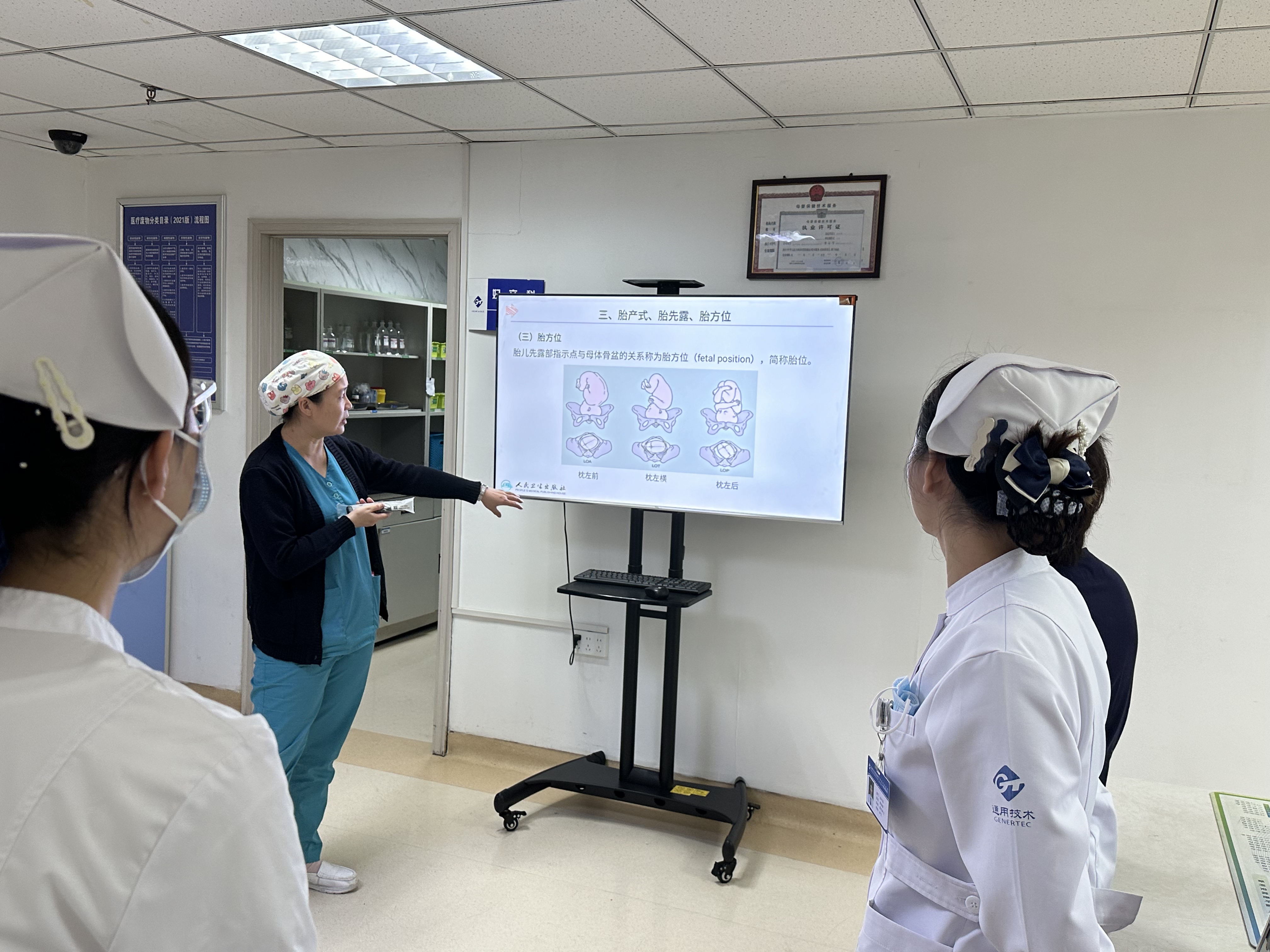 3月3日早晨8点15分,护士站旁边的移动护理大屏前,几个人围站着。助产士王小娟站在屏前,身后是正常分娩的ppt课件。今天讲的是自由体位待产,她把自己在产房遇到的实际案例穿插进去,讲着讲着,就有护士接话:“上周那个产妇,就是用了这个姿势,第二产程明显快了。”大家你一言我一语,把指南上的条条款款,变成了自己手里的经验。15分钟,刚好讲透一个知识点。讲完,大屏一关,护士们开始晨间查房。
