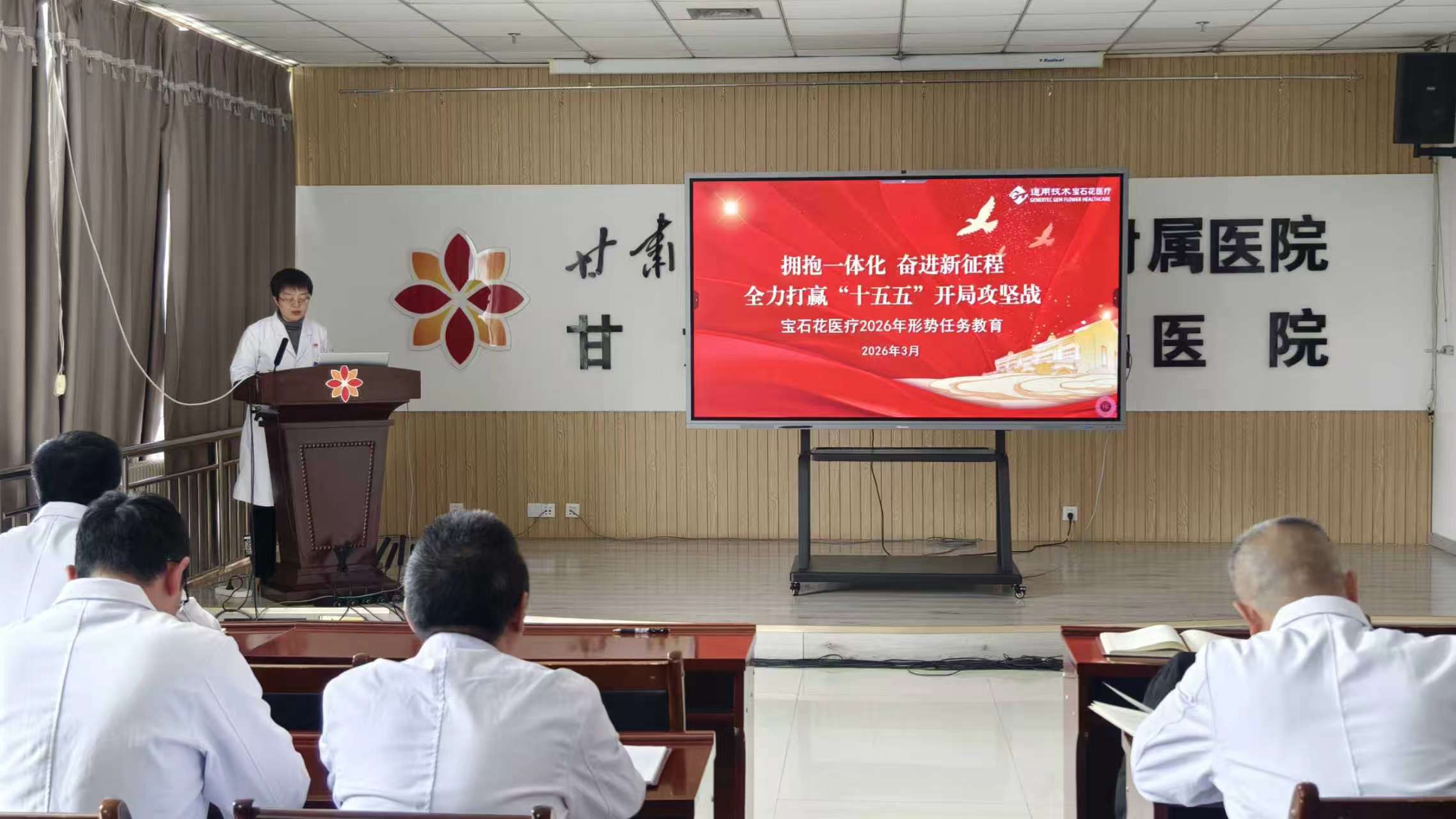 为深入贯彻落实宝石花医疗2026年形势任务教育相关要求,紧扣“拥抱一体化 奋进新征程 全力打赢‘十五五’开局攻坚战”核心主旨,切实把支部党员思想和行动统一到医院决策部署上来,3月19日,兰州石化总医院(甘肃中医药大学第四附属医院)机关后勤二党支部联合机关后勤三党支部,联合召开党员大会,集中传达院领导宣讲核心精神,推动形势任务教育在支部落地生根。