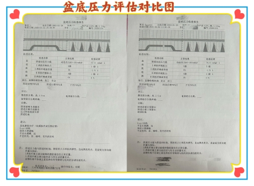 经过一个疗程的系统治疗,杨女士的盆底功能得到了显著提升。复查报告显示,她的阴道动态压力值上升至79.0cmH₂O,Ⅰ类肌纤维肌力恢复至5级,Ⅱ类肌纤维肌力提升至4级,阴道后壁膨出也从Ⅱ度改善为Ⅰ度。更让她欣喜的是,咳嗽、打喷嚏时的漏尿现象基本消失,生活质量得到了极大改善。