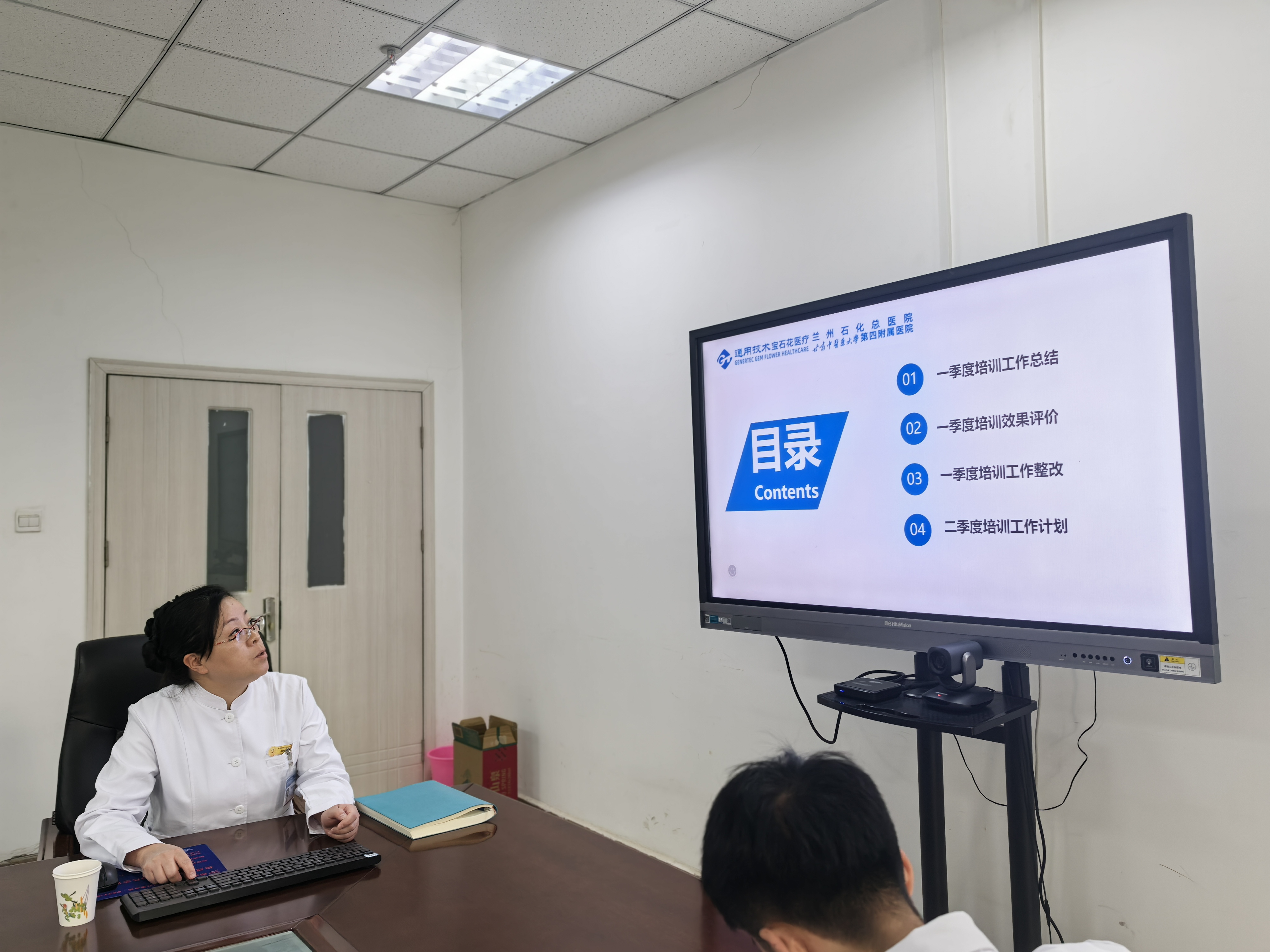 随后,王宁护士长就一季度护理培训工作进行汇报。一季度组织开展护理培训17场次,考核合格率96%—100%。同时暴露出低年资护士团标掌握不牢、护工培训内容贴合度不足等问题,二季度将优化培训方式、推行PBL教学模式,提升培训实效。