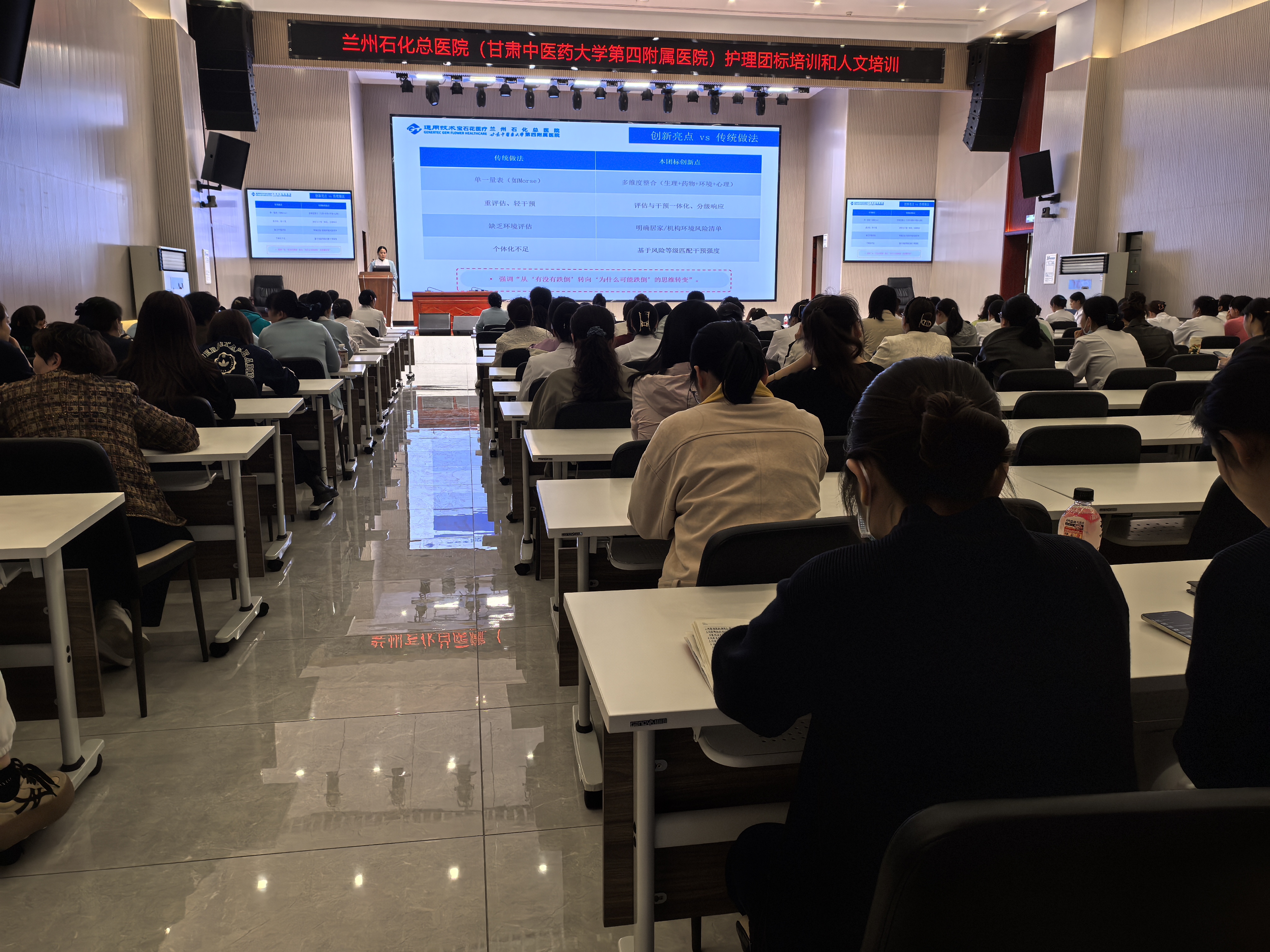 为进一步深化护理人员对人文关怀的理解,强化团体标准的规范应用,2026年4月24日下午,兰州石化总医院(甘肃中医药大学第四附属医院)护理部在临教中心三楼会议室开展了人文关怀与团体标准专项培训。现场学习氛围浓厚,参训人员认真聆听,积极互动,大家一致表示培训内容精准务实。
