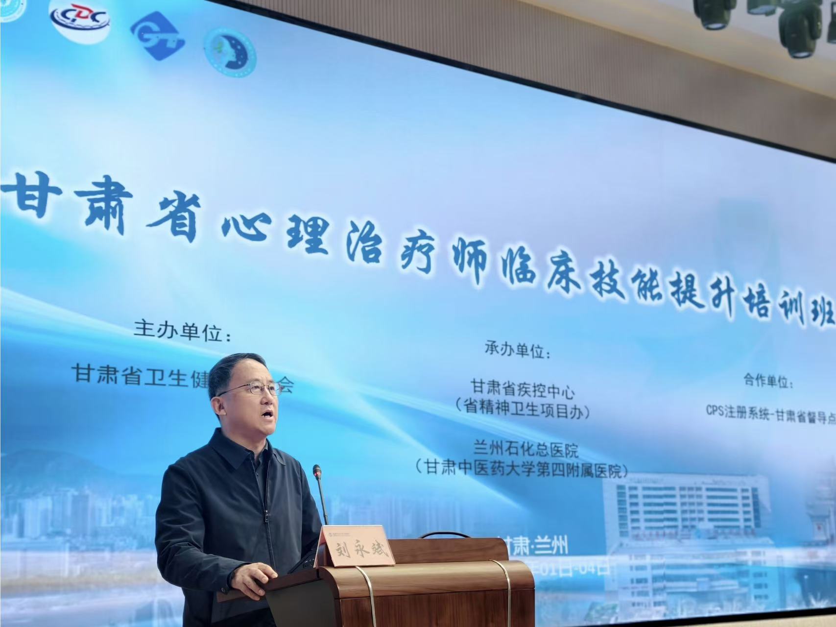 2026年4月1日-4月4日由甘肃省卫生健康委员会主办、甘肃省疾控中心(省精神卫生项目办)、兰州石化总医院(甘肃中医药大学第四附属医院)承办的“甘肃省心理治疗师临床技能提升培训班”在兰州开班。此次培训采用线上 + 线下同步开展的形式,线下汇聚全省各医疗机构心理工作骨干一百余名,线上直播观看人次约 2000 余人。