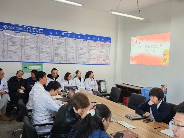 2025年11月27日上午机关后勤一党支部召开专题党员大会,深入学习贯彻党的二十届四中全会精神,紧密结合医院实际现状学习研讨,进一步推动党的二十届四中全会精神走深走实。会议由支部委员祁丽主持。