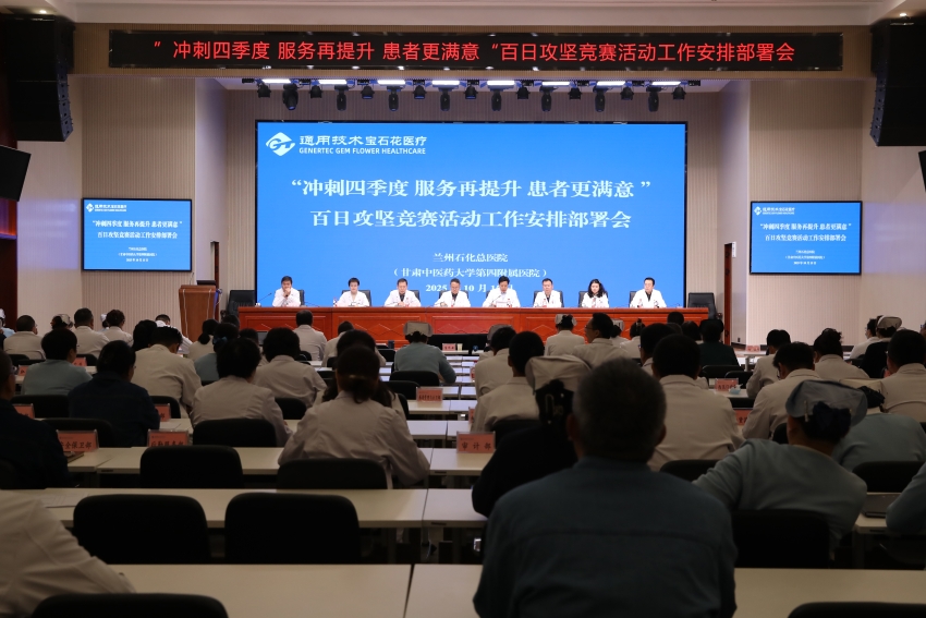 2025年10月15日,兰州石化总医院(甘肃中医药大学第四附属医院)在临床科研教学中心三楼会议室召开“冲刺四季度 服务再提升 患者更满意”百日攻坚竞赛活动工作安排部署会。院长蒲华云主持会议,医院领导班子成员、机关后勤职能部门主任、临床医技科室主任及护士长、各党支部书记参会。