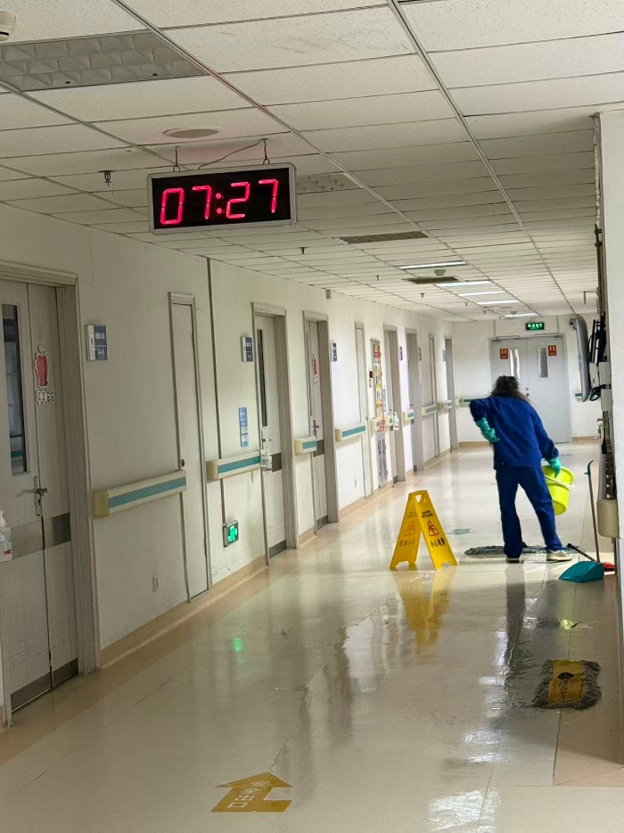 在耳鼻喉科病区,时间的刻度是双重的。电子钟跳着08:23、07:27,那是生命体征的节拍。柴姐的一天,从水桶的晃荡声和拖把摩擦地砖的沙沙声里开始了。她来的时候,天常是蒙蒙亮的。蓝色工装,绿色手套,一桶清水,是她全部的“装备”。消毒水的气味是医院的底色,但她的拖把划过,留下的是清水...
